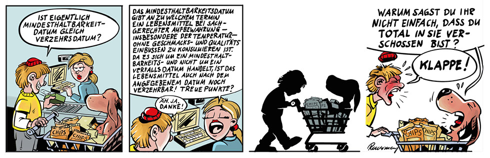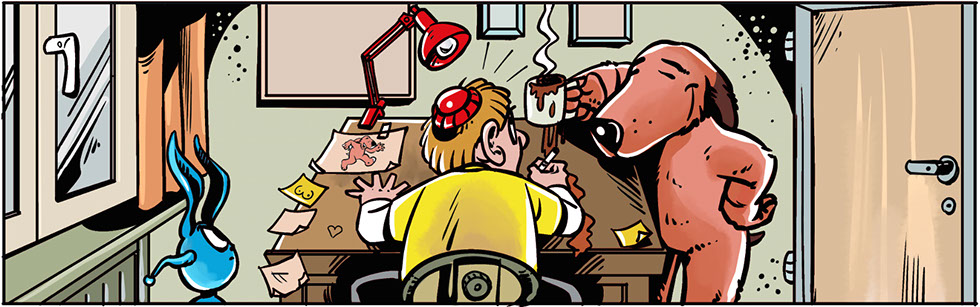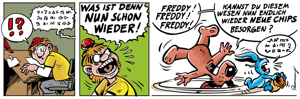 … ist der beste Freund eines Menschen, wird ja immer gesagt. Freddy vermutet in Bastian allerdings eher den Anführer einer Hunderasse, die nichts als den Untergang der Menschheit im Schilde führt. Oder zumindest der Comiczeichner.