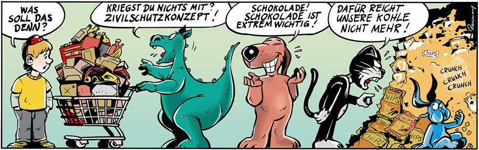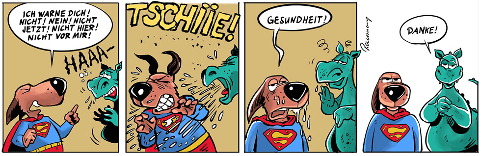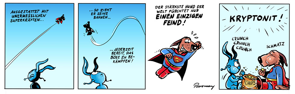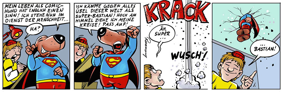 … ist der beste Freund eines Menschen, wird ja immer gesagt. Freddy vermutet in Bastian allerdings eher den Anführer einer Hunderasse, die nichts als den Untergang der Menschheit im Schilde führt. Oder zumindest der Comiczeichner.